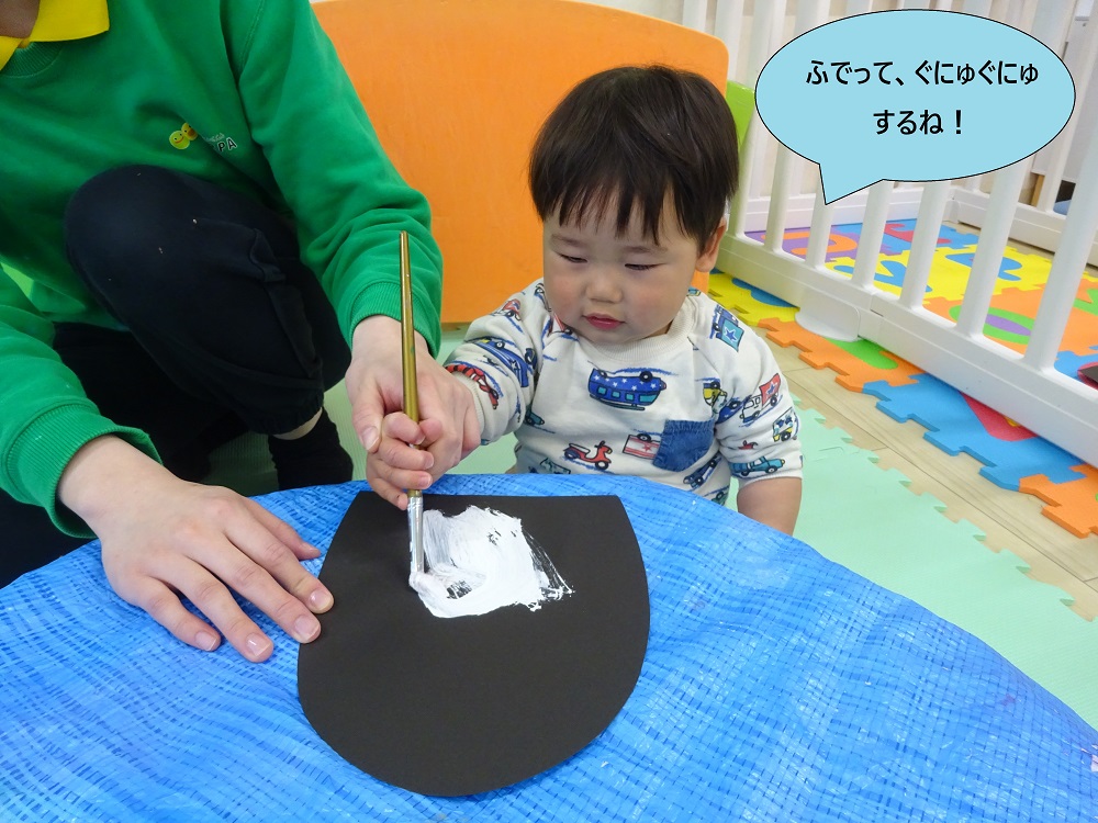また、製作活動を通して筆を持って絵の具を塗ったり感触などにも慣れてきて、製作に意欲的に参加できるようになりました!