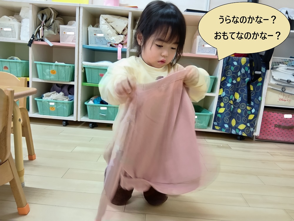 園生活では、繰り返し練習を重ね、ズボンや服の表返しができるようになりました!