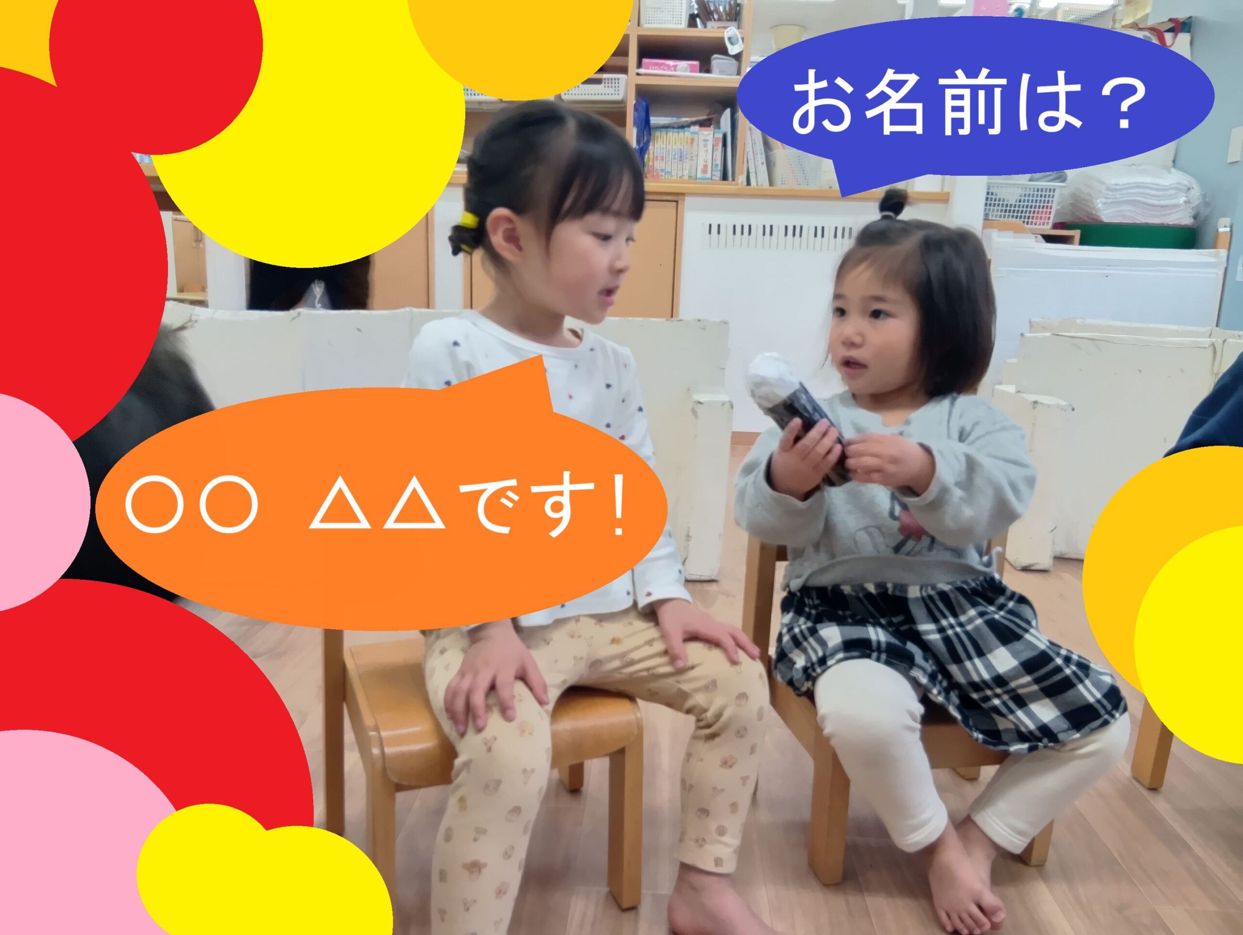 個人マーク探し、お名前呼び、マイクを向けられて名前発表など、日常生活や遊びも経て、お友だちのことを沢山知ってきた子どもたち!