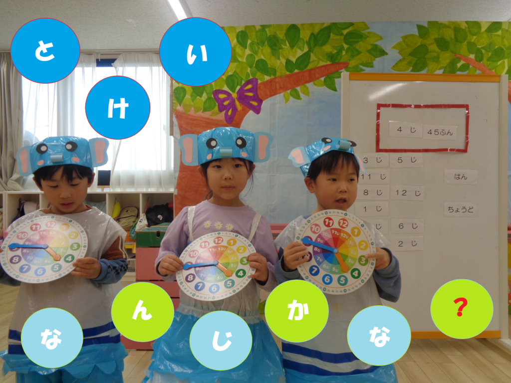 これまでのレッスンで取り組んできた「Who are you?」「Where are you going ?」などのやり取りをしながら、クイズ形式で知育timeの内容を組み込んで行いましたが、日頃からの積み重ねであることから、「言える!」「分かるよ!」と気合十分😊
