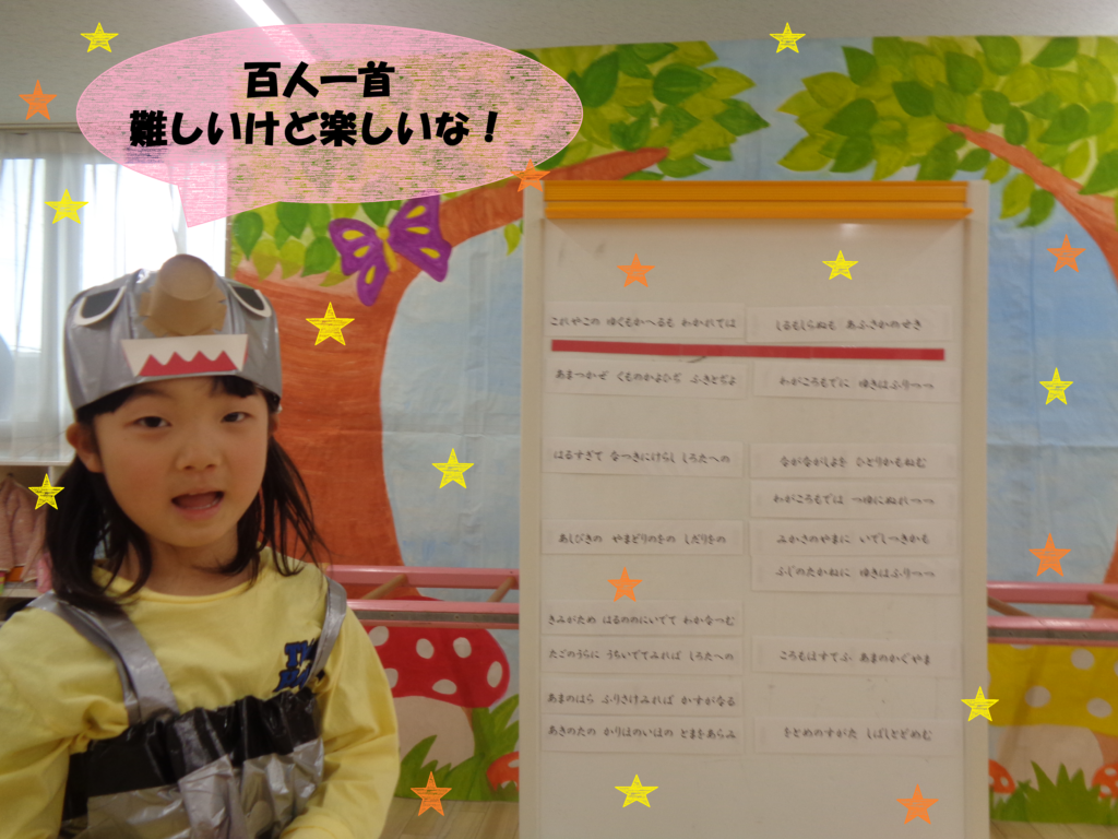 問題に出された時間を時計⏲を使って作ったり、形を見て都道府県や有名なものを答えたり、百人一首では出された上の句から下の句を思い出して発表したり…。