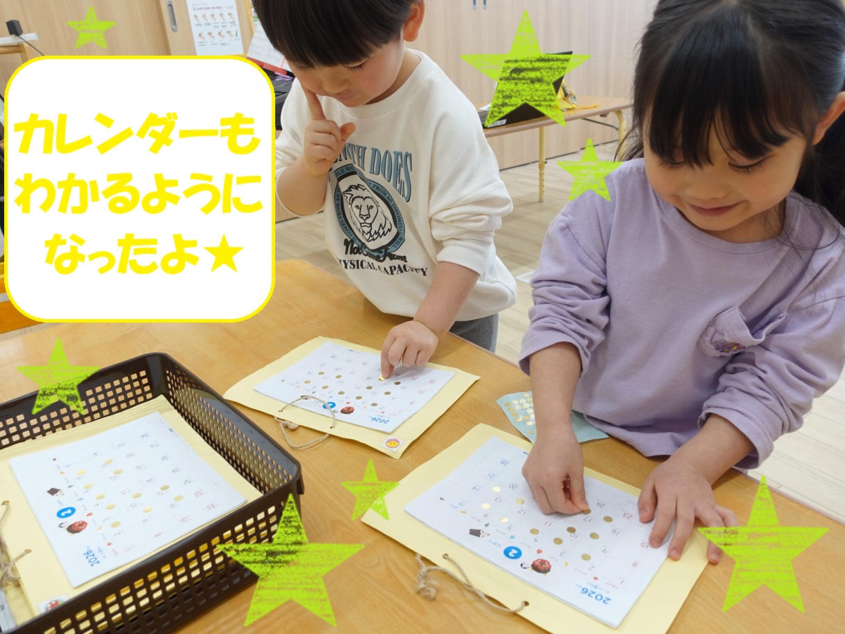 普段から日付を目にし、数字や日付に触れることで「今日は何の日?」と興味を持って生活しています。知育での日付確認では自信を持って「○月○日○曜日です!」と答えることが出来るようになりましたよ✨