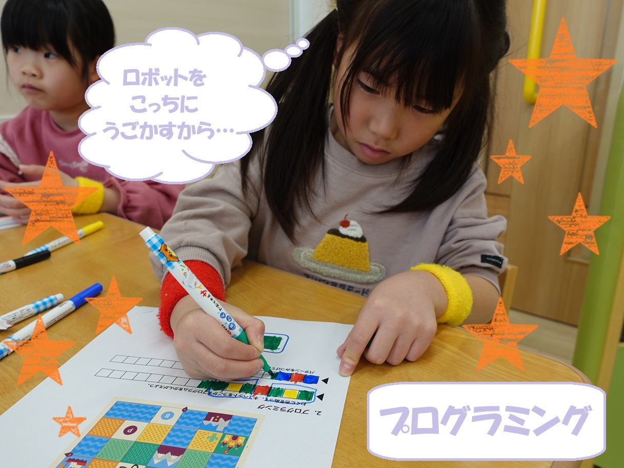 またプログラミングでは、効率や繰り返しのパターンなどを自分の力で見つけ出す力がつき、日常生活でも自然と使う姿が見られることもあります🎵