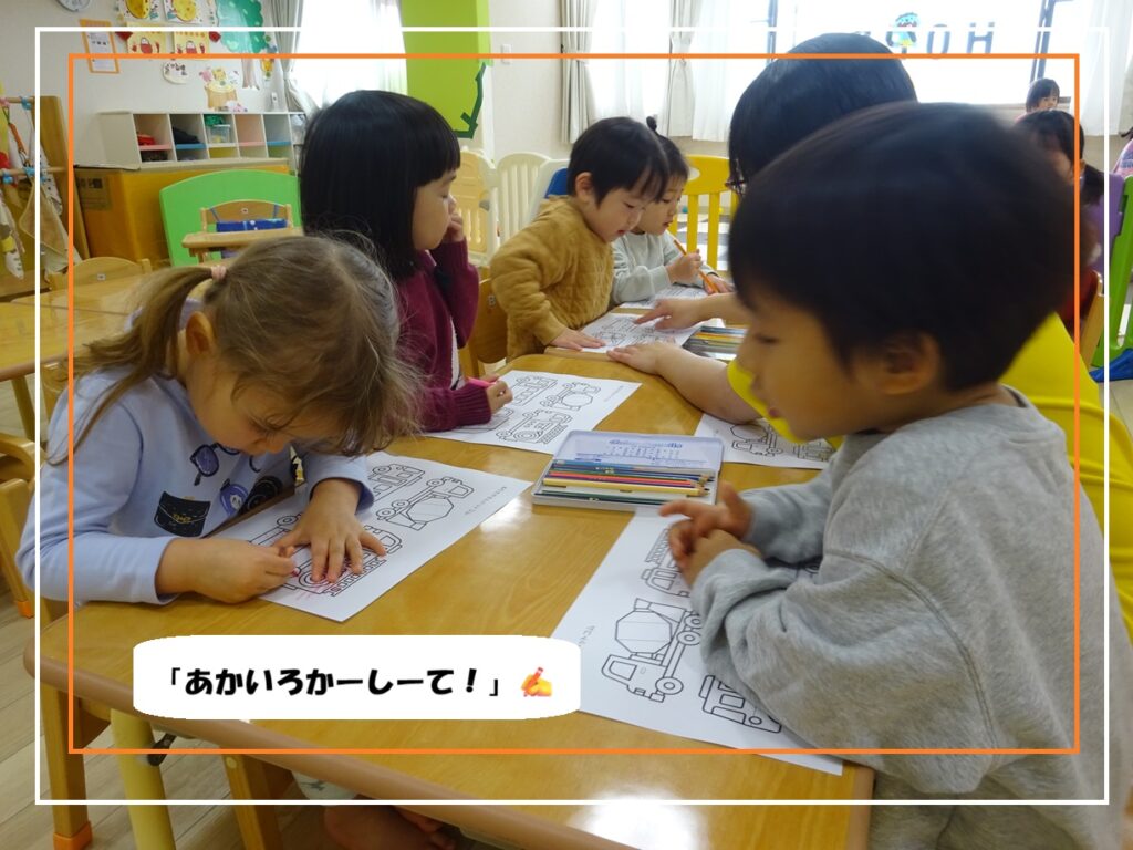 『どんな色がすき』の歌に合わせてお友だち同士でうたう姿がとても可愛らしいです🎵