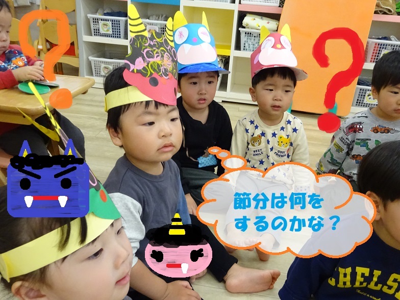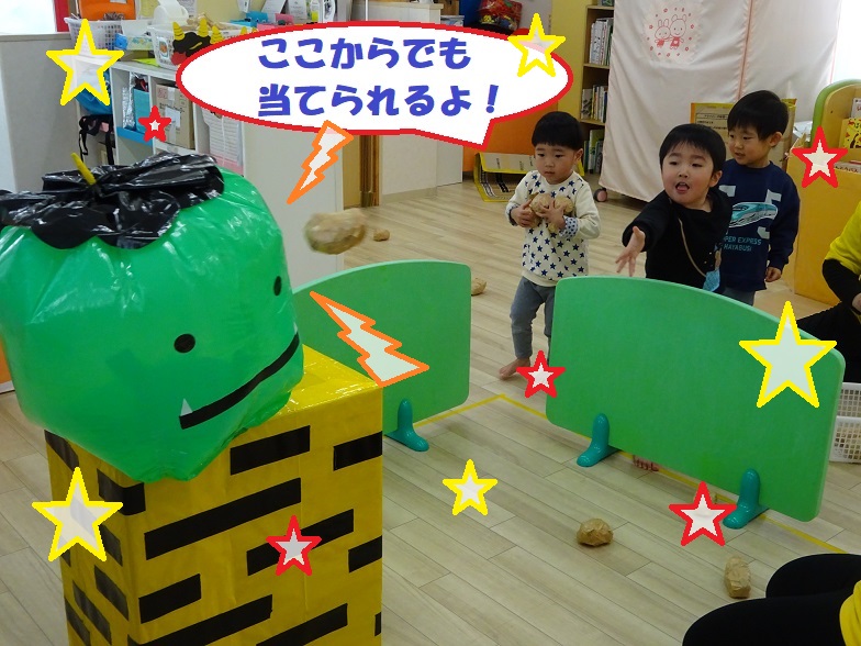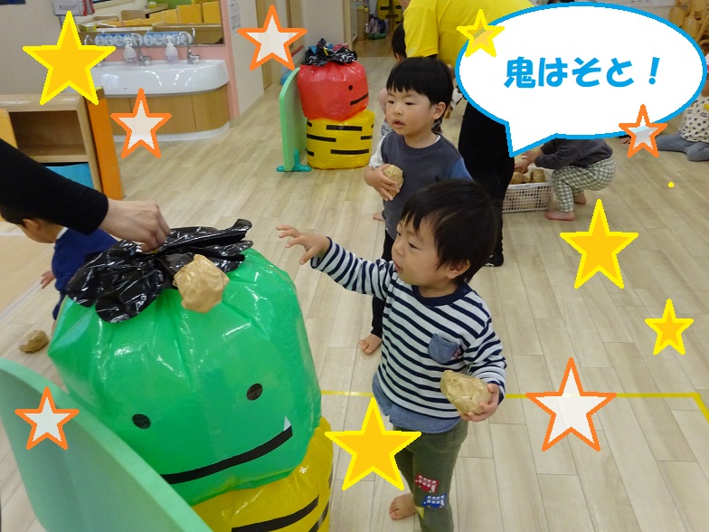 節分についてのお話を聞いたあと、オニに豆まきをしましたよ😆