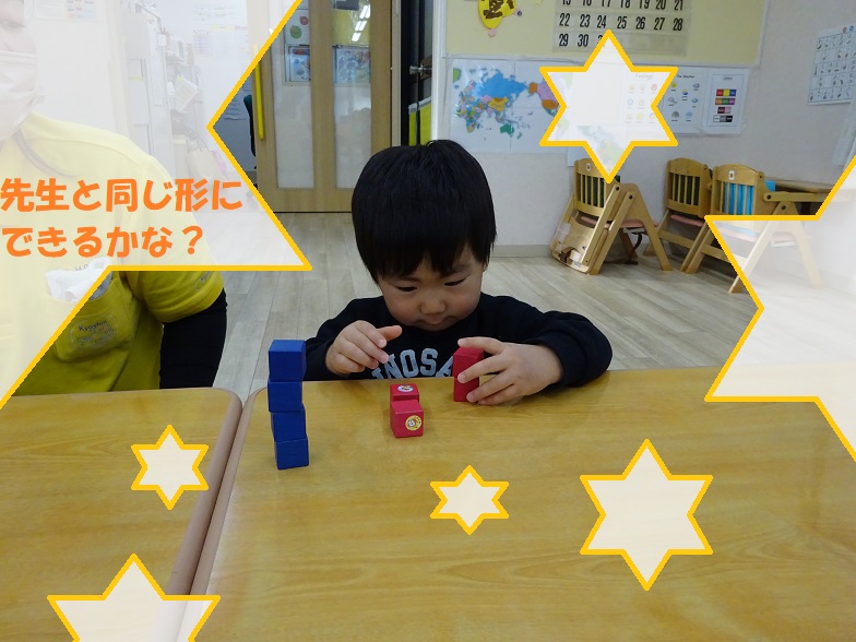 最近はシールを台紙からはがして紙に貼ったり、積み木を高く積んだりと、集中力もUPして知育timeに参加しています✨