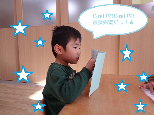 音読では「じゅげむ」を午前と午後に毎日行い、何度も取り組むことでスラスラと読めるようになりました。