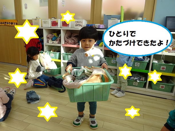 1人で着替えができるようになり、今では服を丁寧に畳んで、片付けまで頑張っています✨