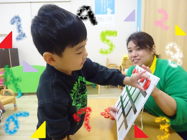 進級当初は10までの数字が難しく首をかしげていましたが、10より上の数を指差しで数えることができるようになってきました!