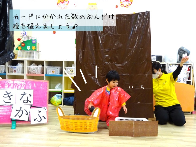 その種をシリウス組の子どもたちが、カードを引いて、書かれた数だけ、種を取って畑に植えます。