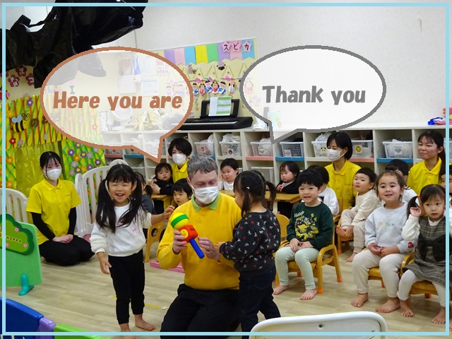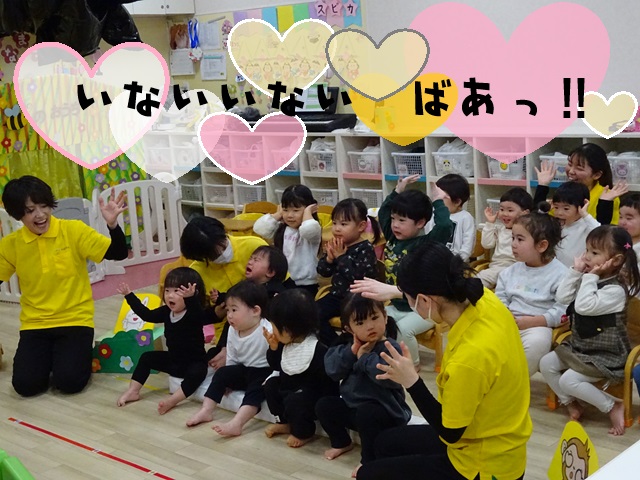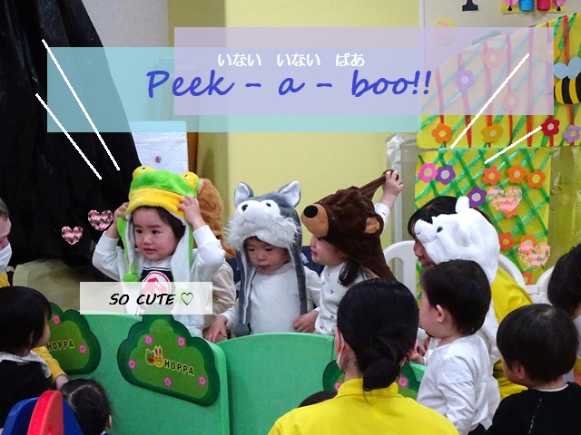 「Peek-a-Boo!(ピカブー(いないいないばあ)」と言いながら、子どもたちが顔を出す姿はとっても可愛らしかったです。