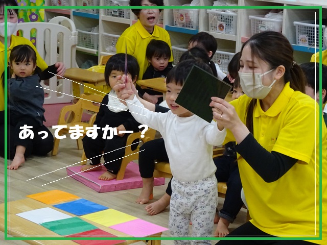 ベガ組(1歳児クラス)は、色の選び取りをしました。