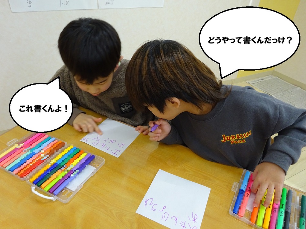 シリウス組では一年を通して、自分の作品に記名したり、誕生月のお友だちにイラスト付きのメッセージカードを書くなどひらがなに親しみをもてるような活動を多く取り入れてきました!