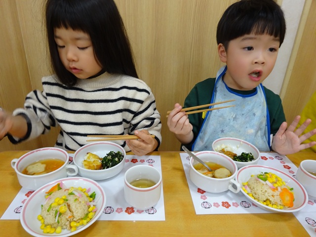 給食やおやつもひなまつりメニューでした♡