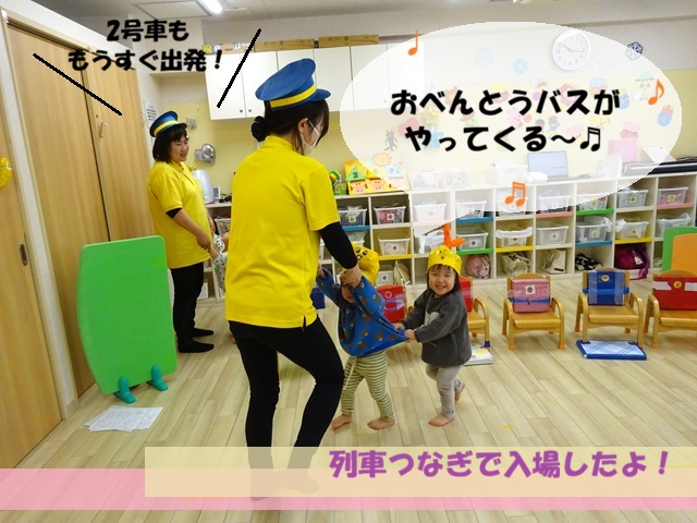 今年度、ベガ組さん(1歳児)は『おべんとうバス』をテーマに運動遊びや歌遊びを楽しみました🚌
