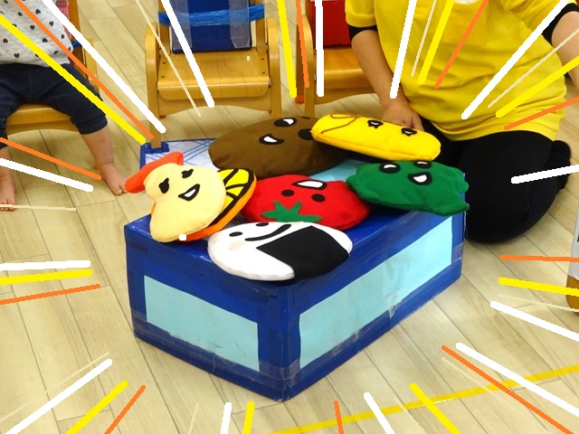 「おにぎり役の○○くん!」というように、呼名の場面では具材になりきった子どもたちと進行♪