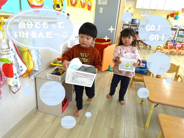 「つぎはこれ?」と確認しながらも、声掛けなくテキパキと動けるようになり、お友だち同士で声をかけ合う姿も見られるようになりました。