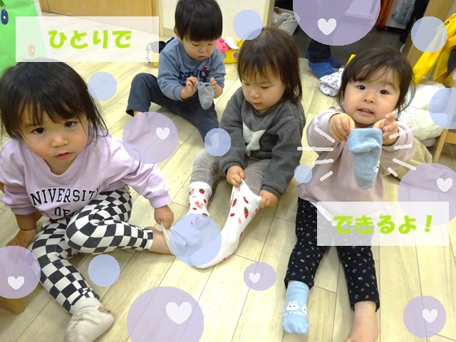 また、年明けからは身の回りのことにも挑戦しはじめ、着脱や散歩の準備等も、自分でやってみようとする姿が多く見られはじめています!