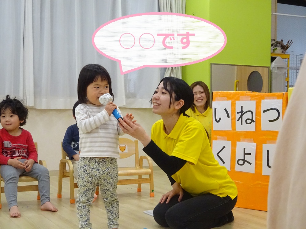 緊張しながらも自分の名前や年齢、好きな色を答えています😊