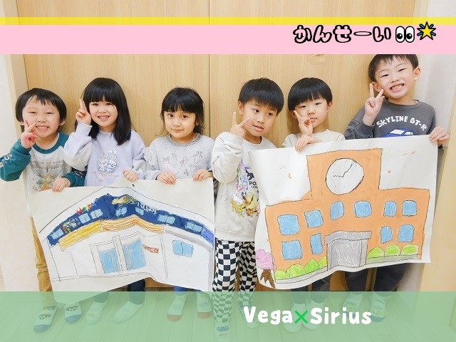 思い出の園舎と、小学校の絵もみんなで協力して書きました🖍