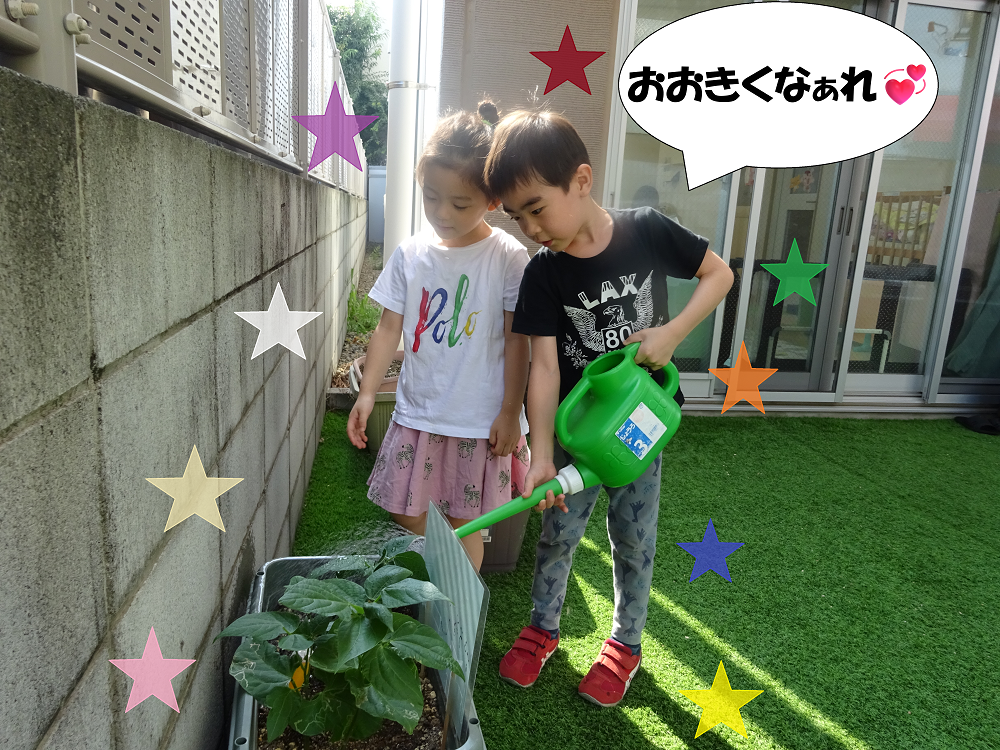 種を植えた後に毎日幼児クラスのお当番さんが水やりをしています✨