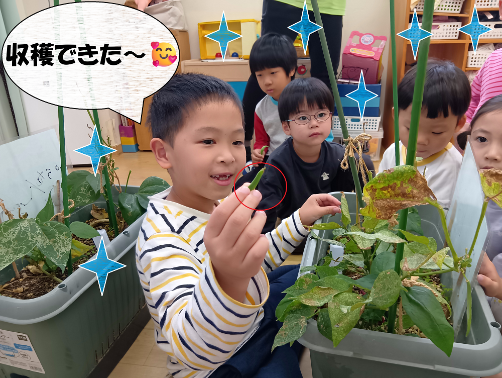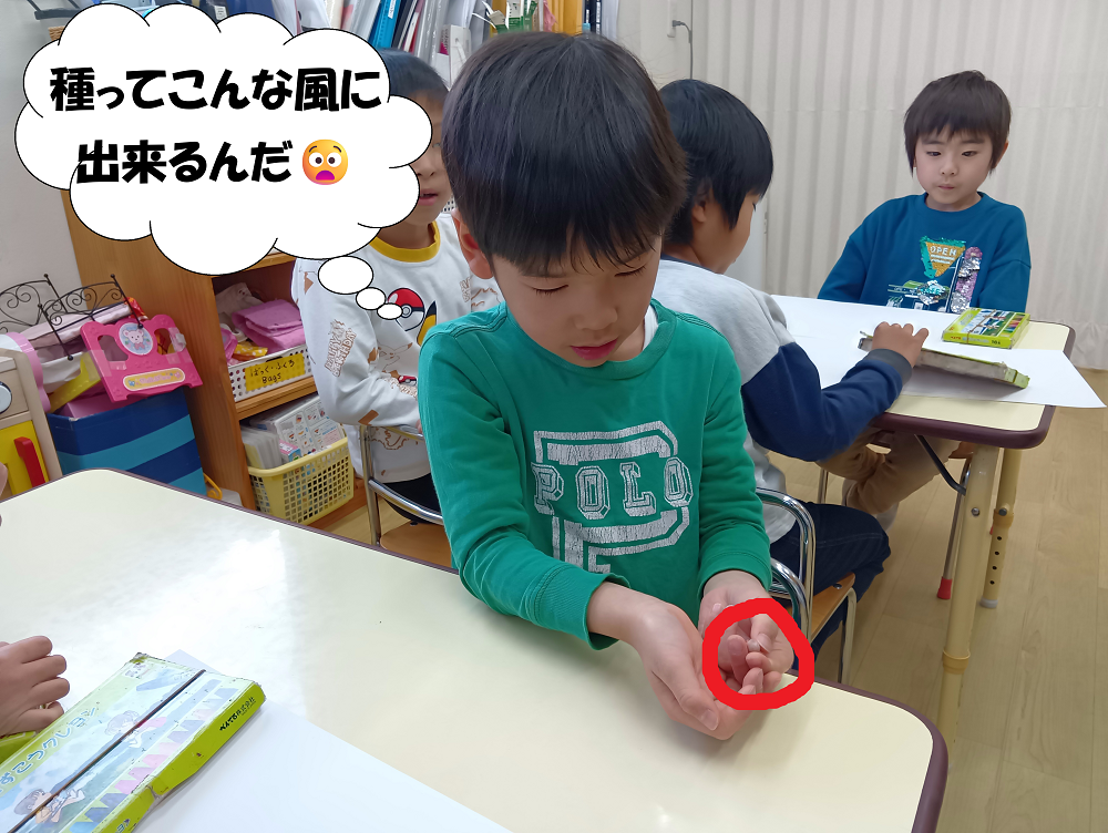 シリウスクラスの子たちの「探究心」はここでおしまいではなく、いんげんの後は何になるのか??という疑問が浮かんできました。