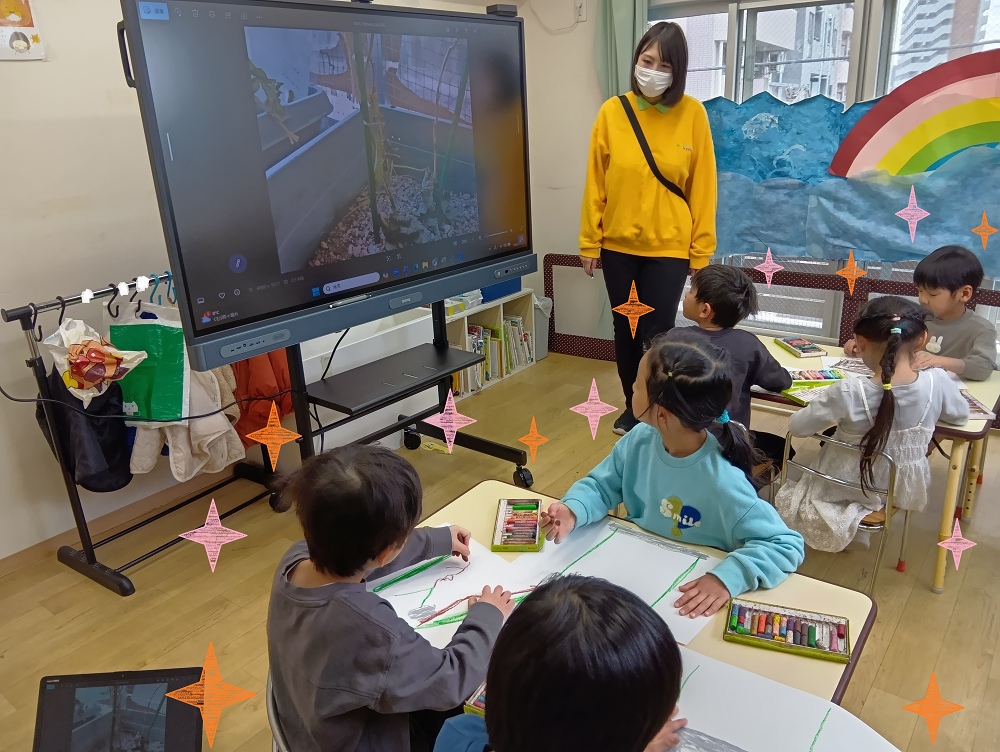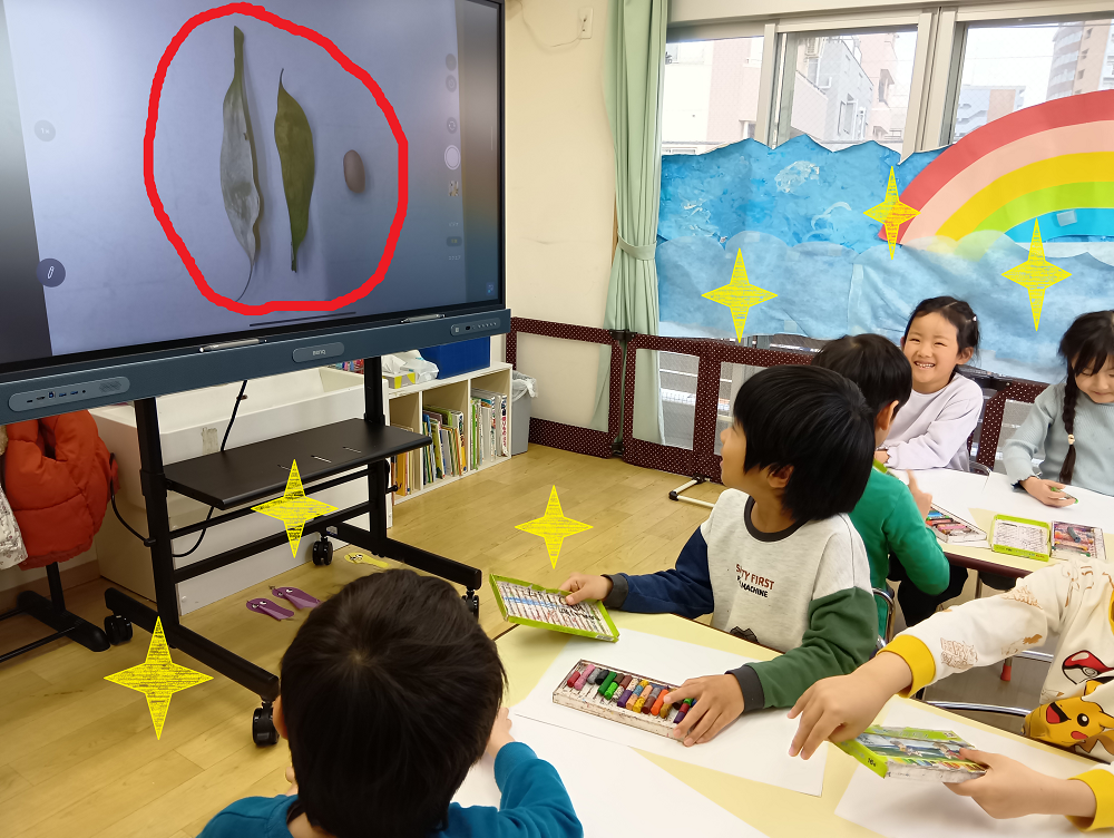 また、ただ観察をするだけではなく、より鮮明にスケッチができるよう電子黒板も使用しました🤩