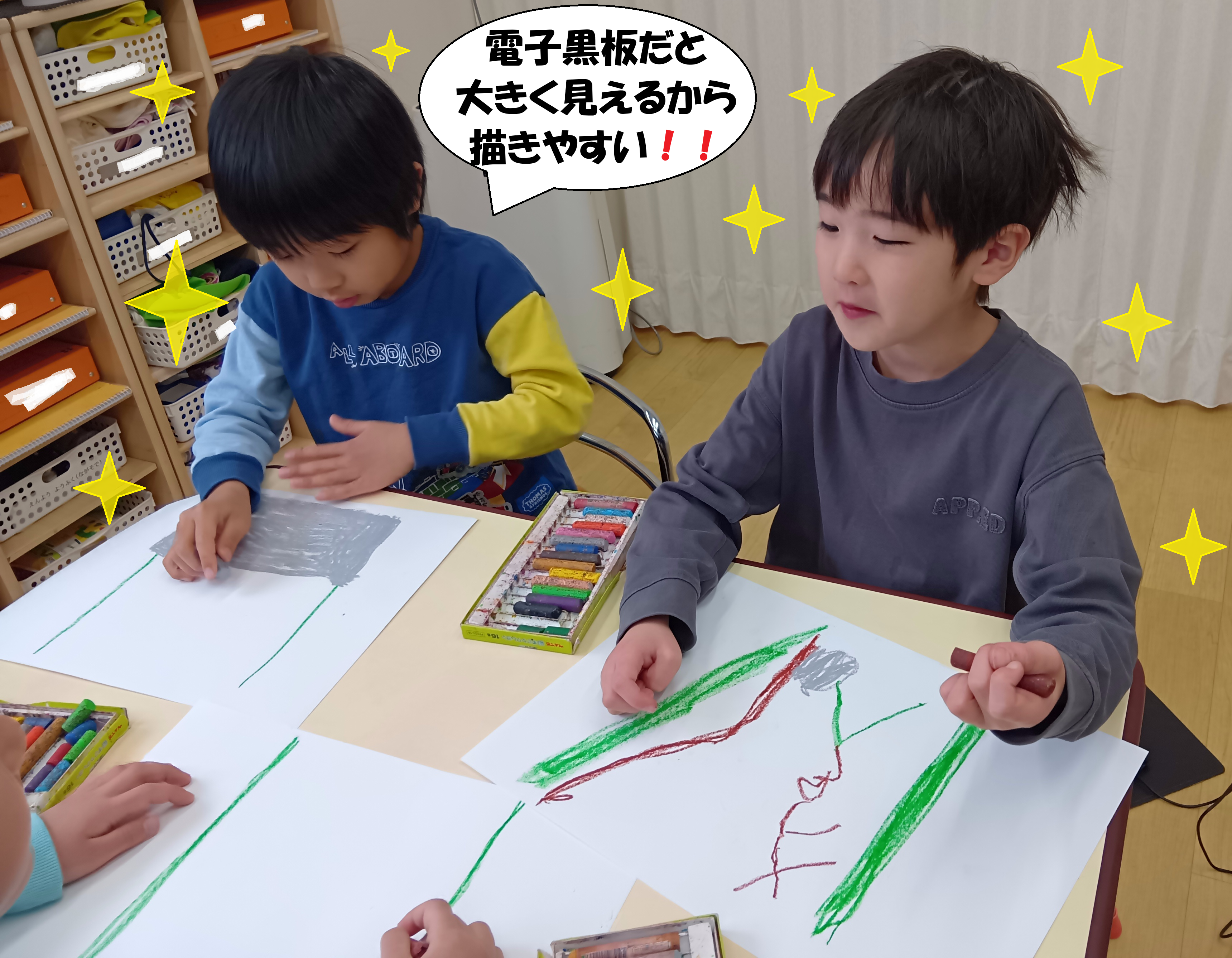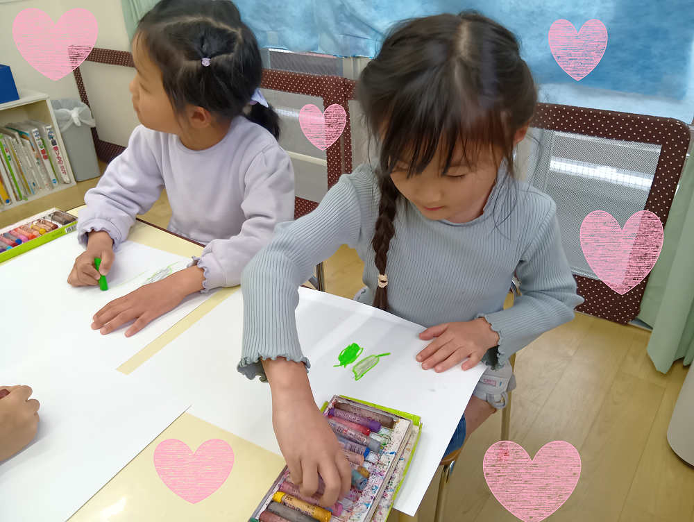 シリウスクラス(5歳児)はできたいんげんをスケッチし、出来た喜びなどを絵として残していました💖