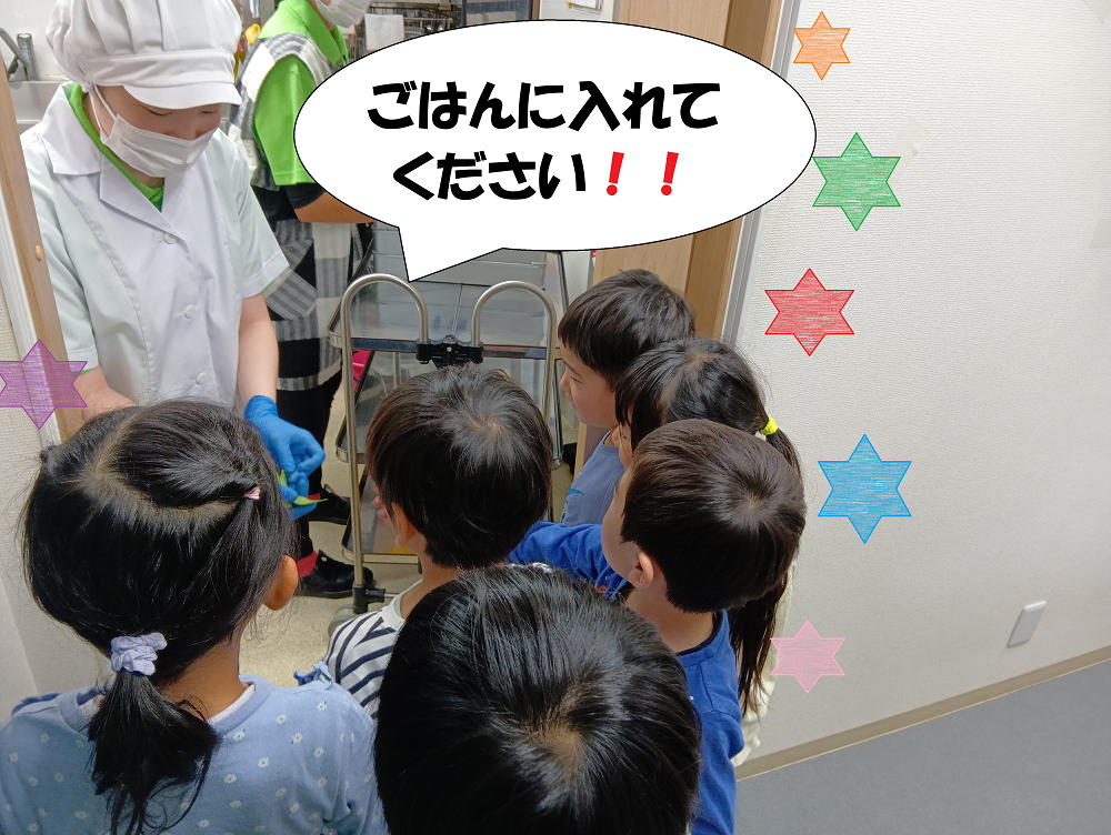 収穫したインゲンを子どもたちが給食室まで届けに行き、手渡しで渡しました🎵
