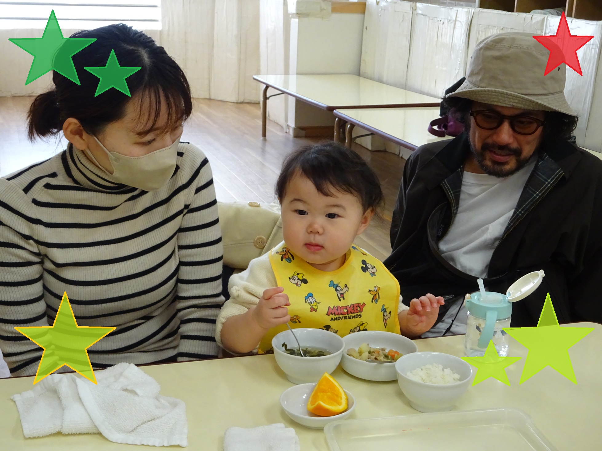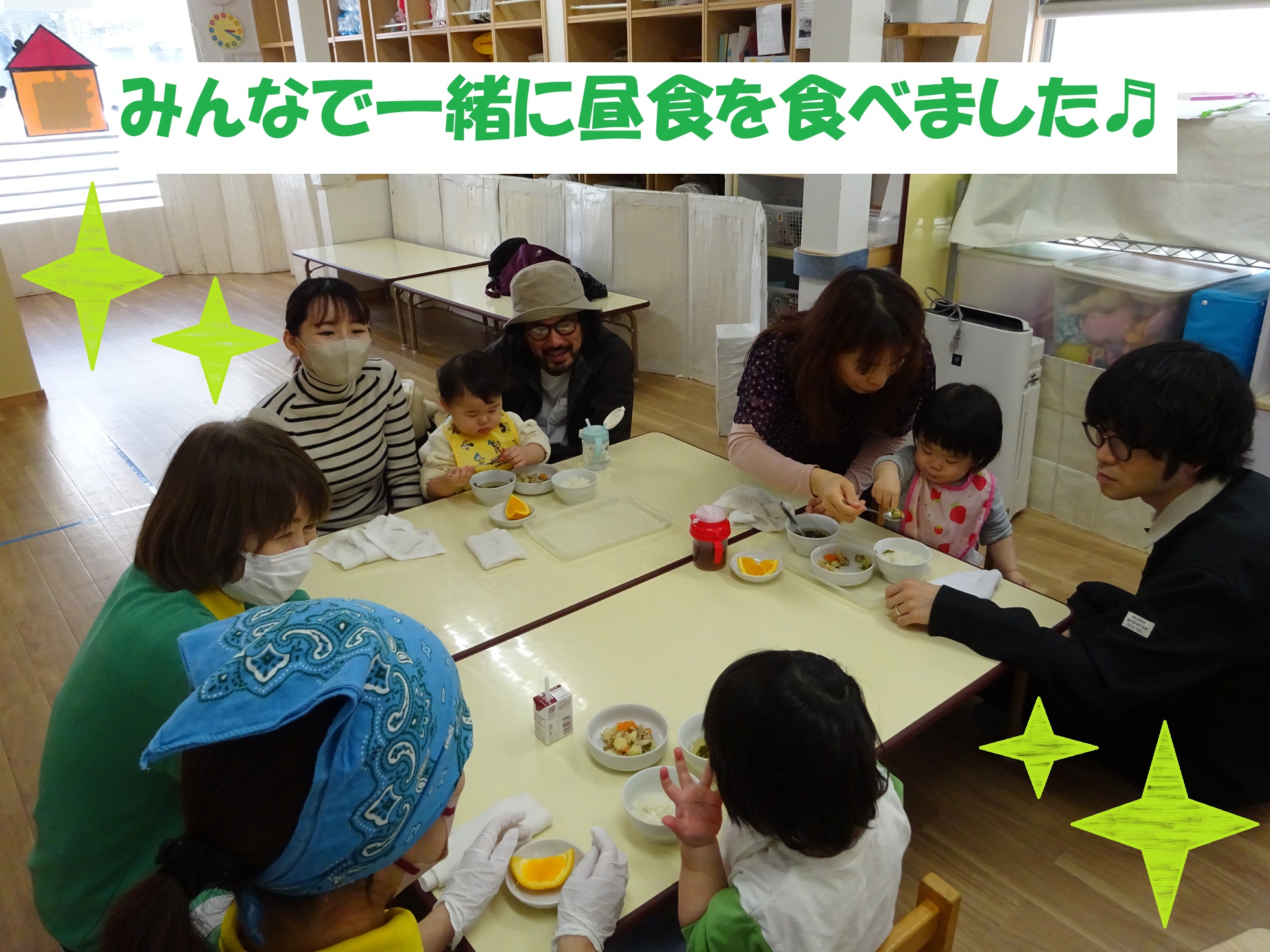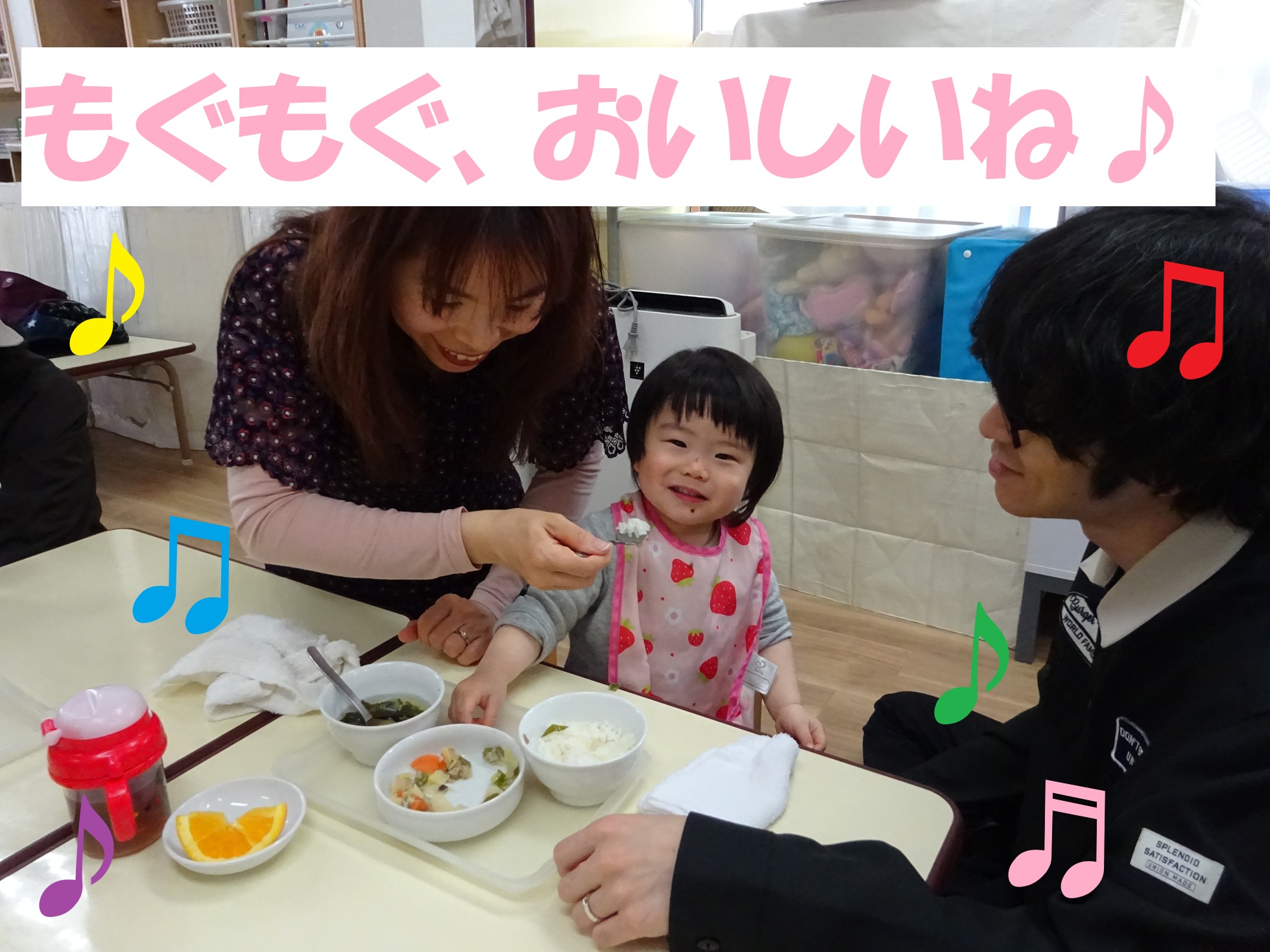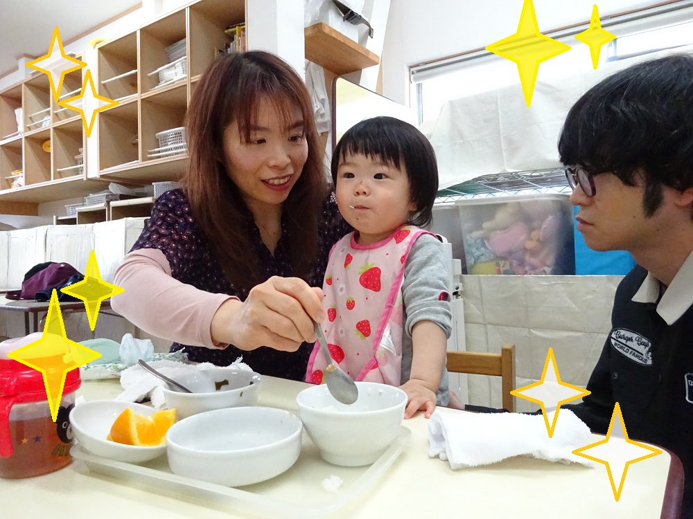 当日は、保護者の方にもお子さまと一緒に食事をしていただき、「家庭よりも味がやさしくて参考になった」、「食材の大きさや柔らかさが勉強になりました」といったお声もいただきました☆
