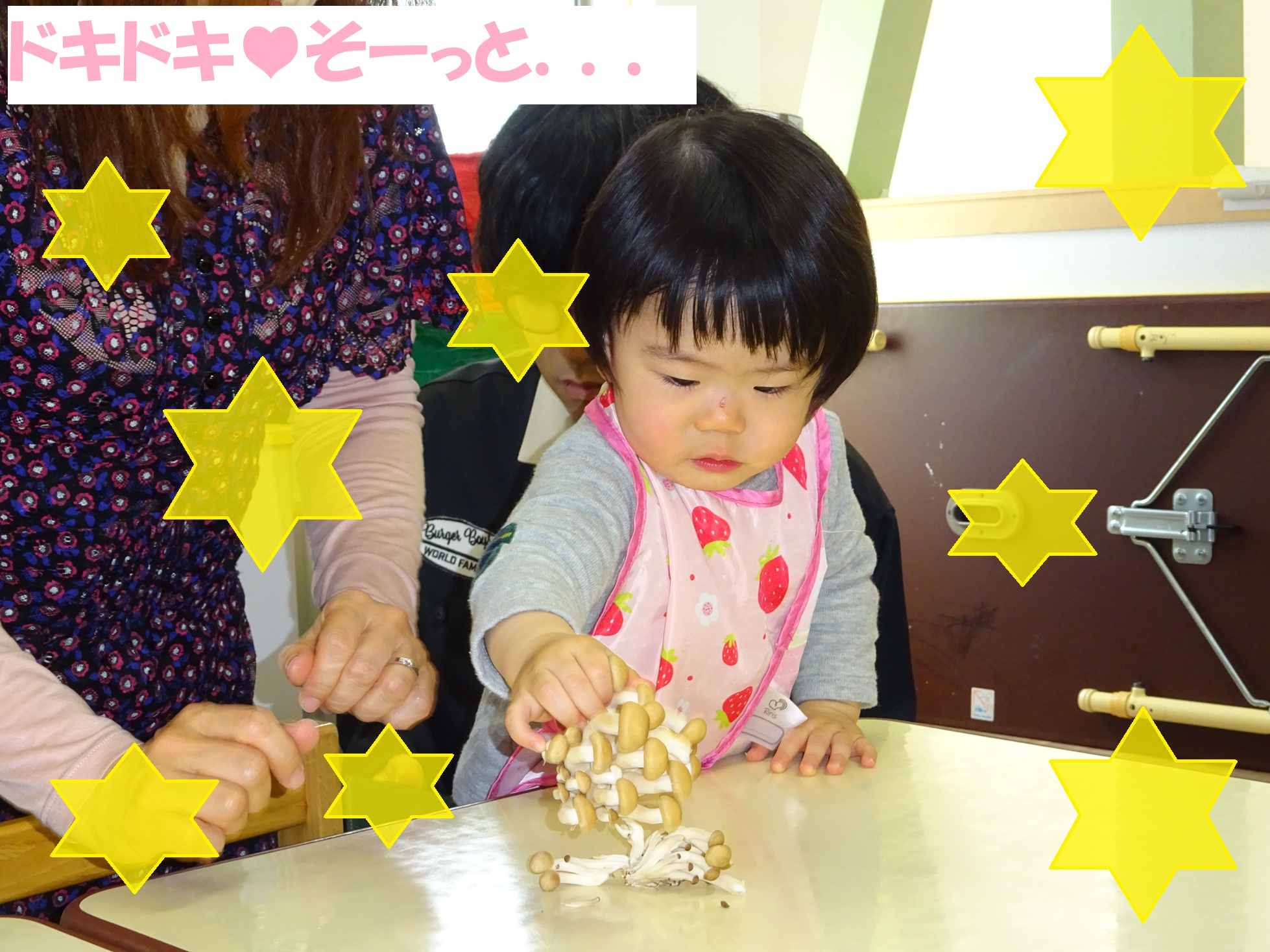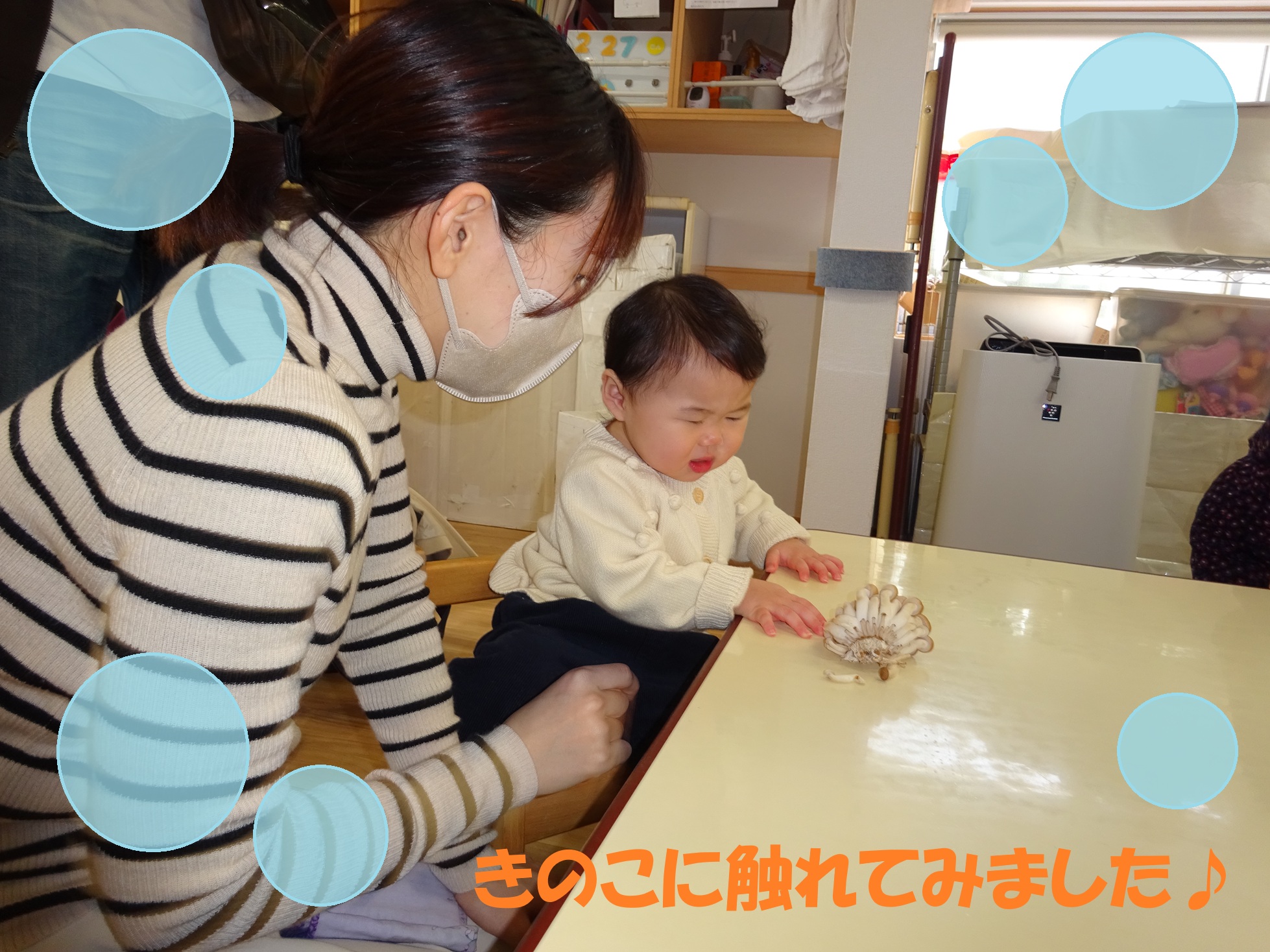 絵本に出てくるきのこに興味を持つ様子が見られました。