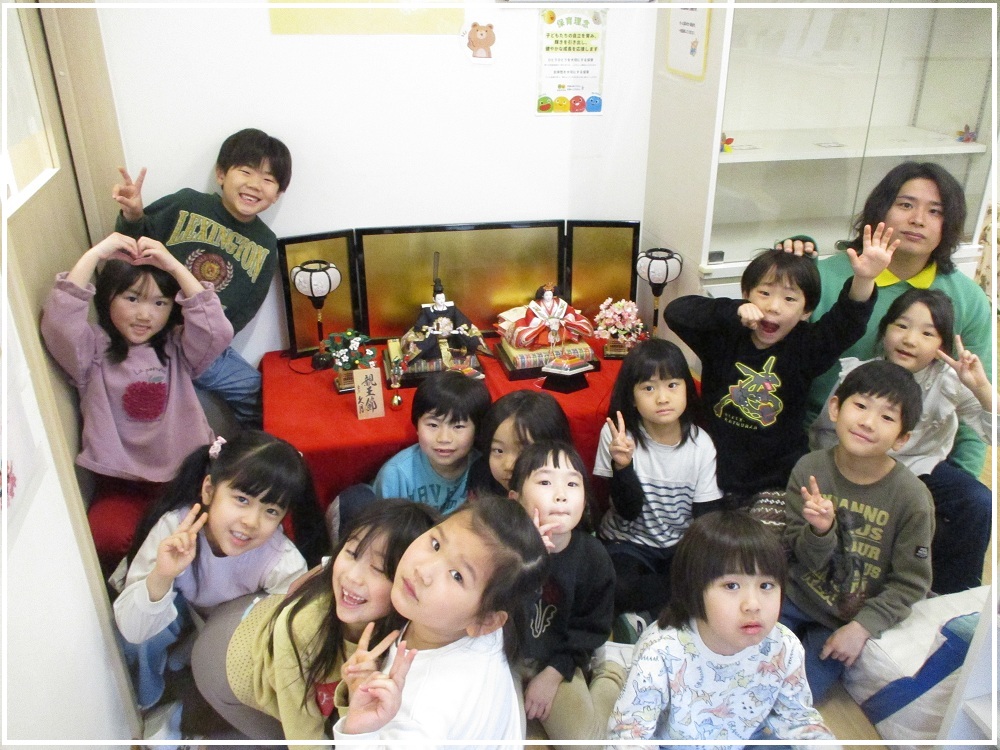 地域の方から頂いたお雛様の前で「はい!ち~~ず」
