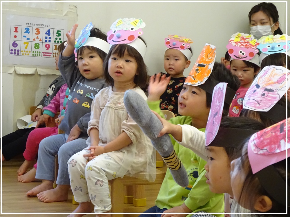 乳児クラスさんは、ひな祭りのお話しをじっくり聞く事ができるようになりました。