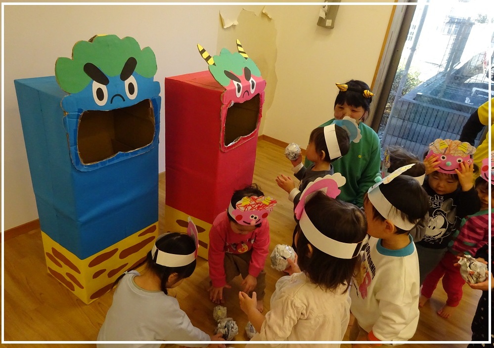 おにはそと~、ふくわうち~パラパラパラパラまめのおと~…