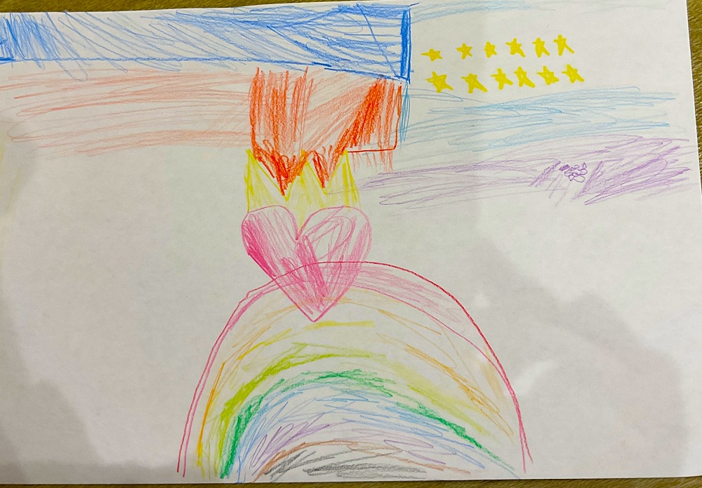 - 「天気が悪くても…虹が出たら、みんな幸せな気持ちになるから、虹もいれたいな。」