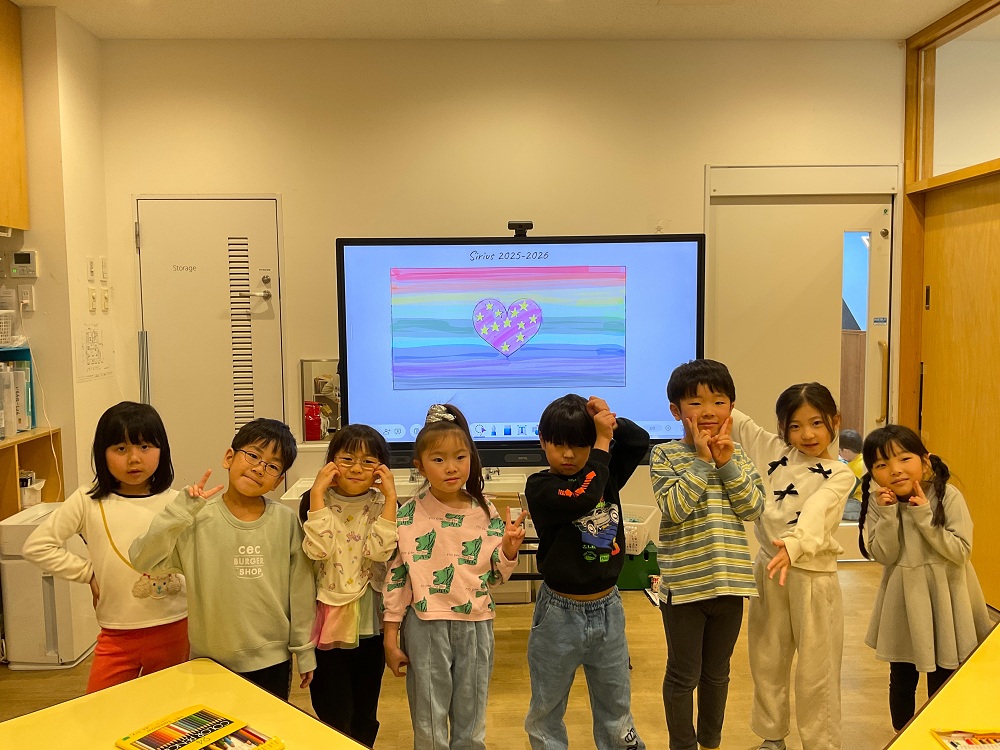 オリジナル国旗が完成すると「素敵だね!」「これみんなに見てもらいたい!」と完成を喜び、自然と拍手をする姿が見られました。