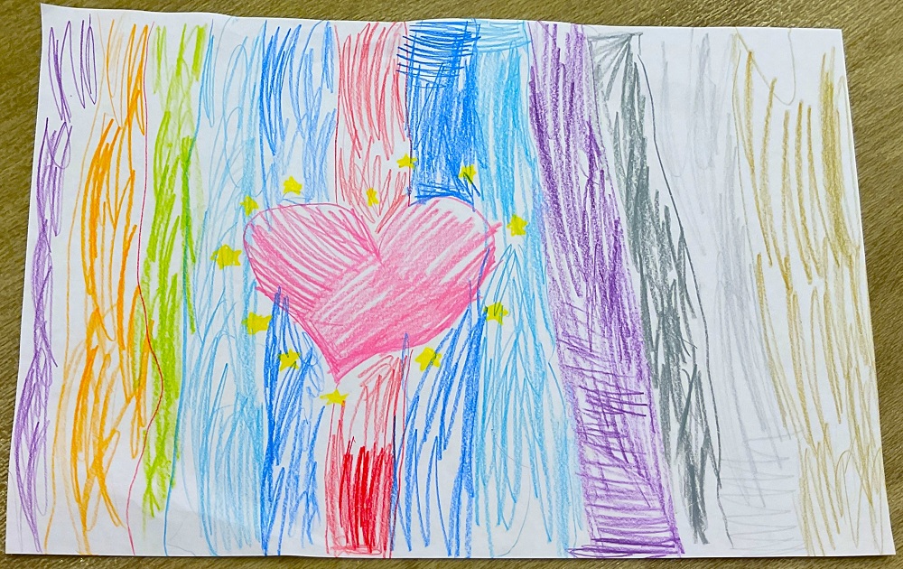 - 「ハートを入れたら、みんな仲良く過ごせるよね」
