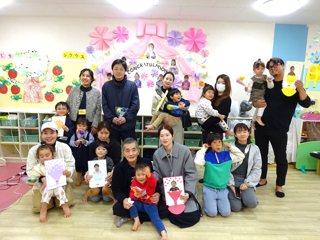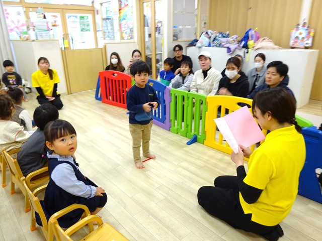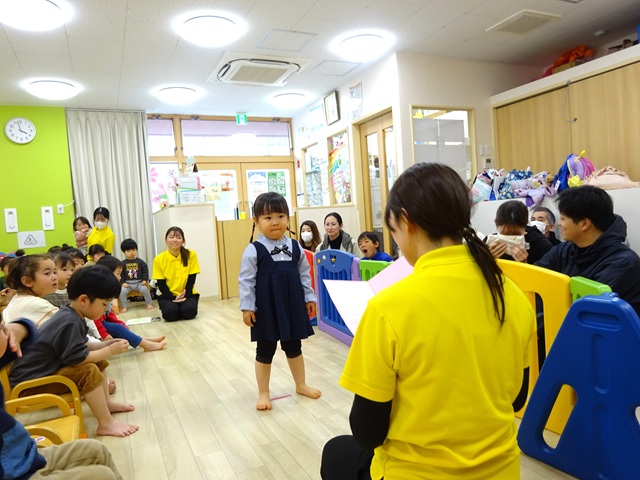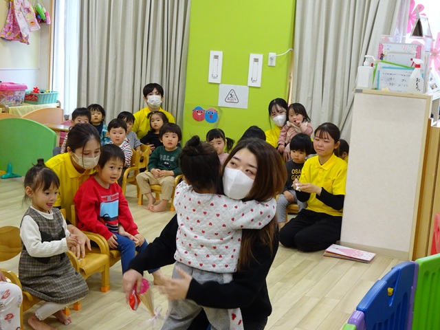 シリウス組(2歳児クラス)の子どもたちは、4月から別の保育園や幼稚園へ転園されるので、シリウス組の子どもたちのお別れ会を行いました。