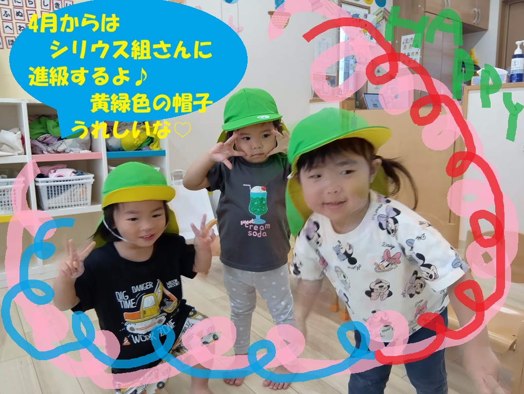 HOPPA泡瀬さざなみ園をよろしくね~!いままでありがとう!という思いを込めて、先輩のシリウス組さんから帽子のプレゼントしましたよ⭐