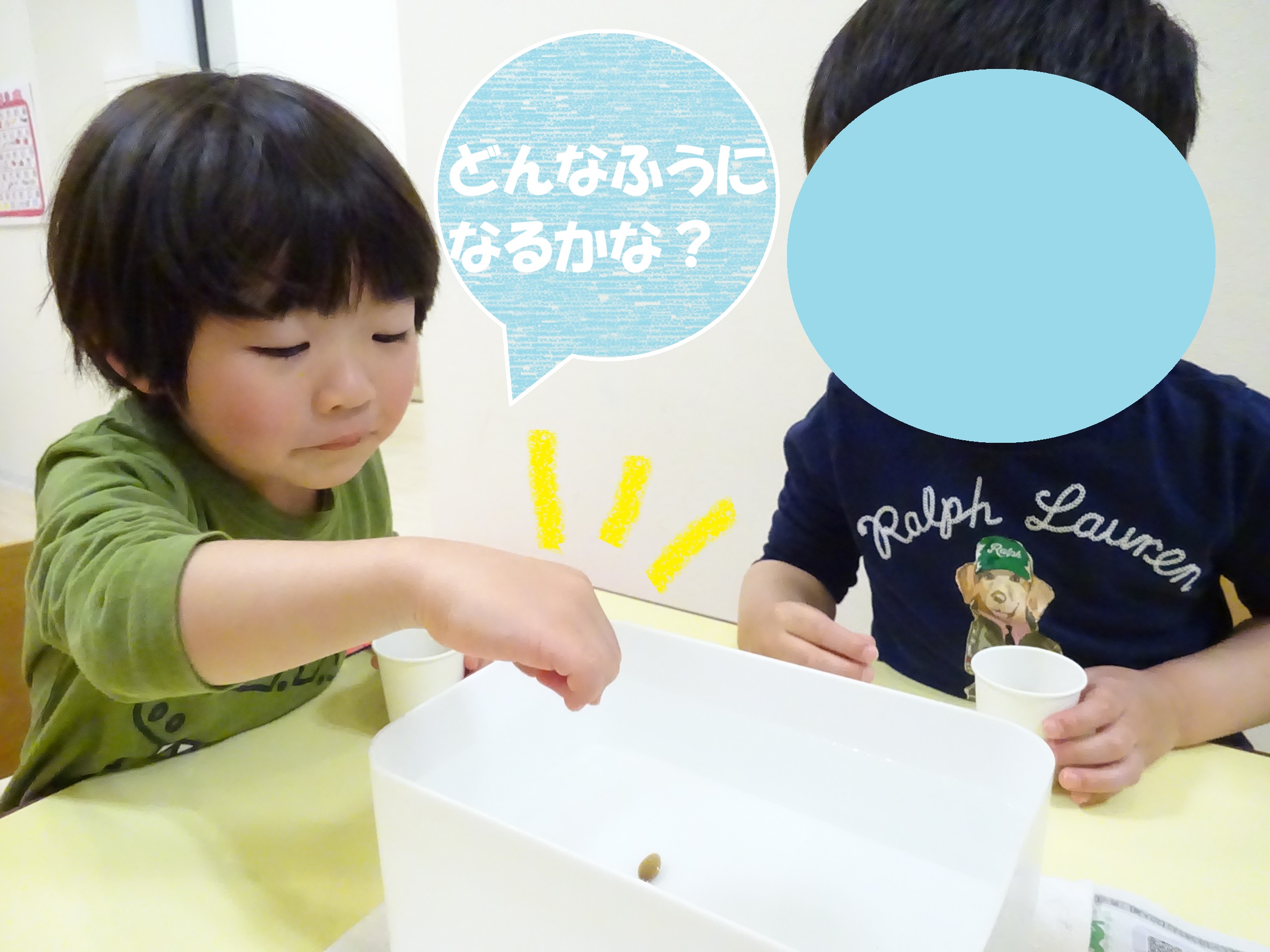 優しく入れると浮かび、強く入れると沈む、小さいから浮かぶ、大きいから沈む…など、子どもたち自身が色々発見していました🌟