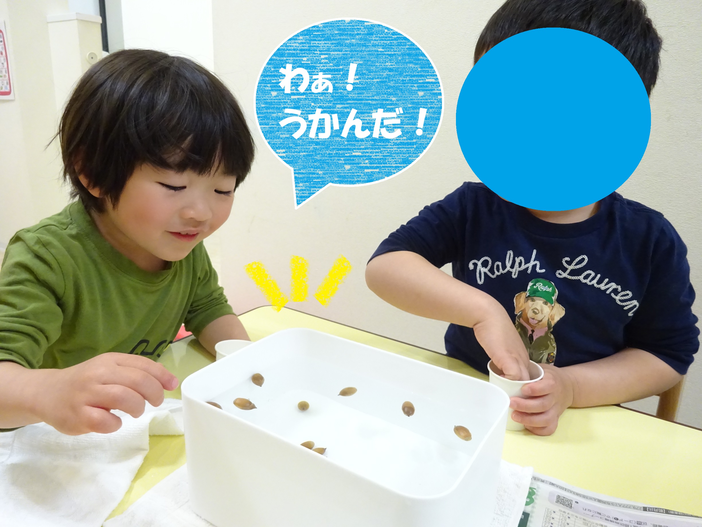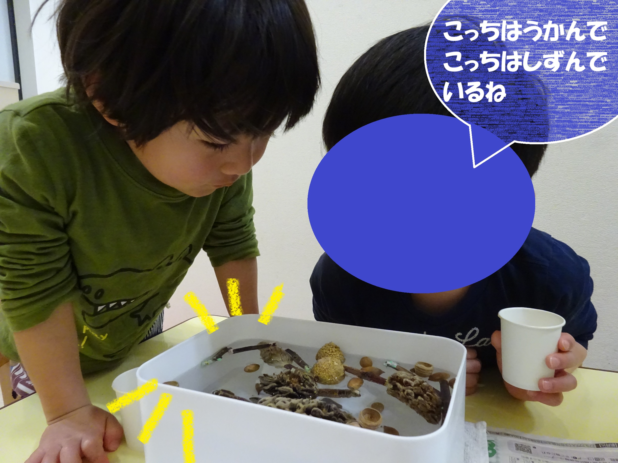 「あれ?こっちは浮かんでる!」「こっちは沈んでるね!」