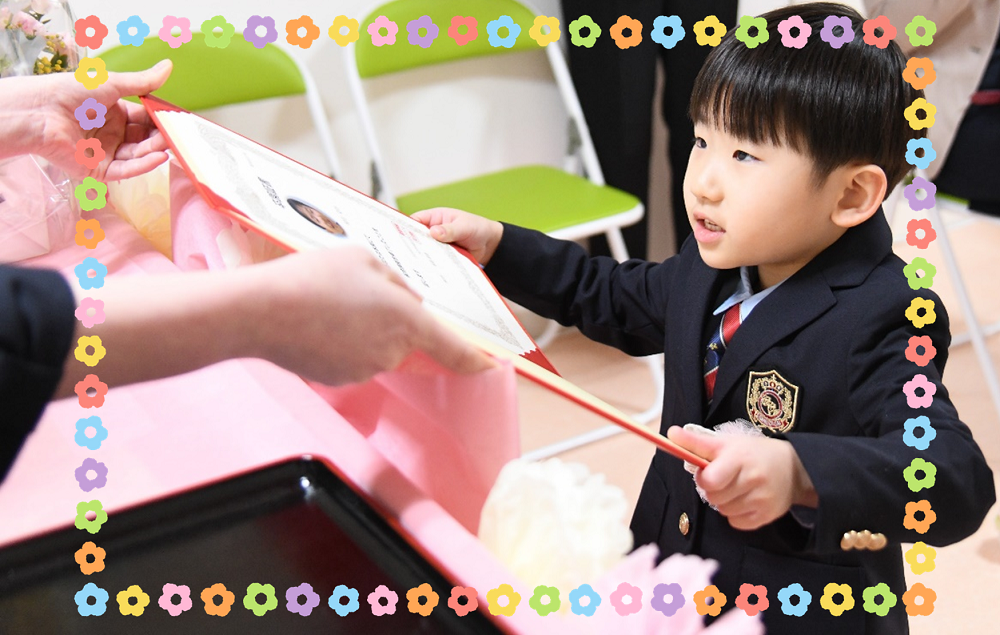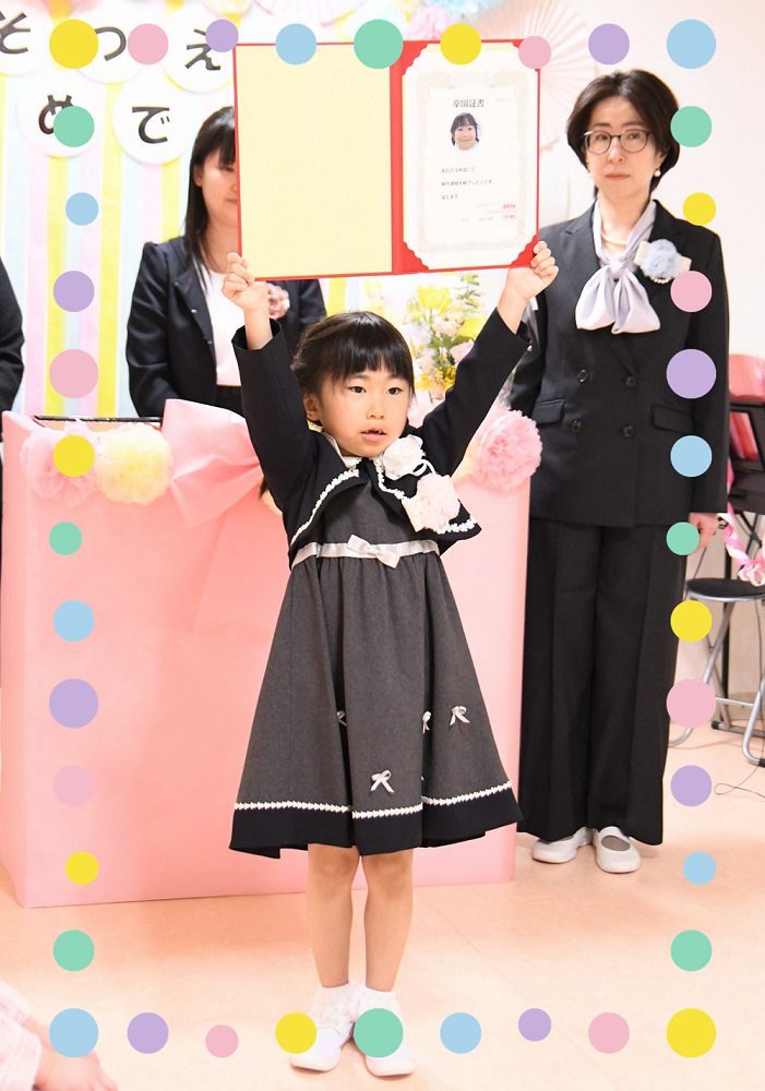 入退場の歩き方や証書の受け取り方、卒園の歌など覚えることが多かったのですが、保護者の方々や先生たちにかっこいい姿を見せたいと一生懸命頑張っていました👍