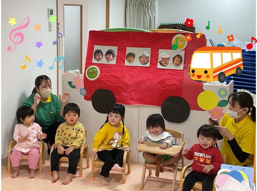 オリジナルプログラムの発表の後は、“おべんとうバス”の歌に合わせて名前を呼ばれたらお返事をしたり、お歌を歌ったりしました🌟