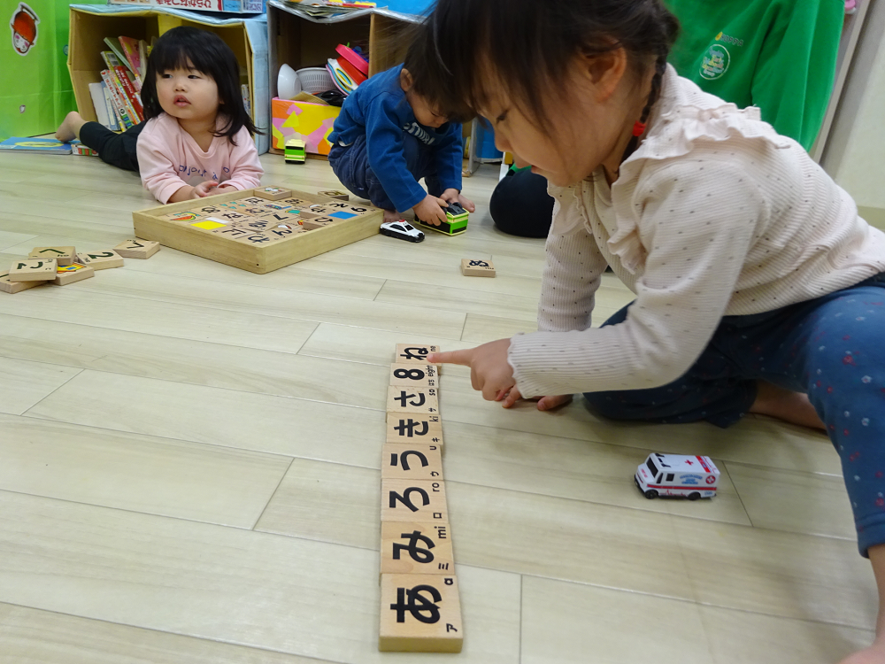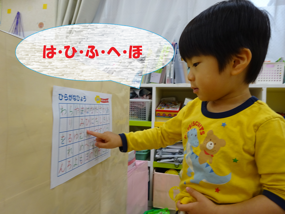 2歳児さん、なんとひらがなを読めるお友だちもいます。