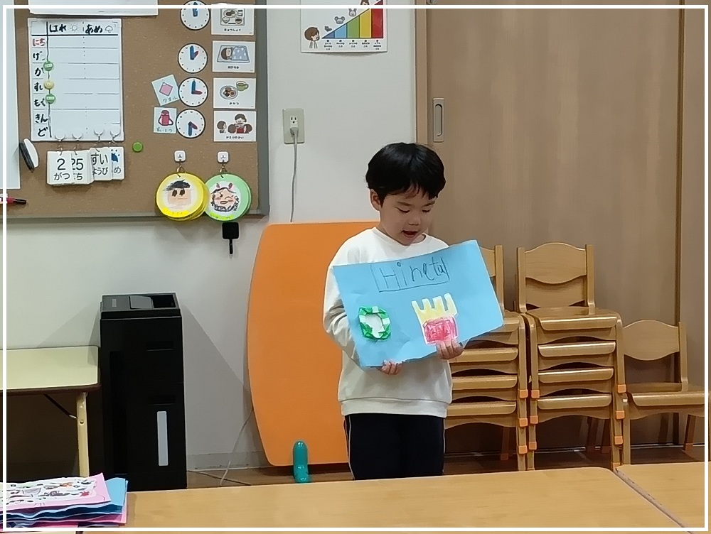 日々の保育の中で取り組んできたEnglish timeや知育活動の成果を、一人ひとりが自信をもって発表する姿が見られました🎤