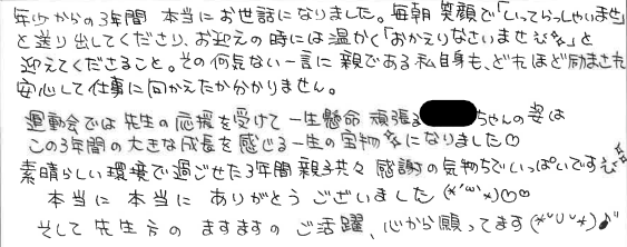 今回のブログでは、卒園児の保護者様からいただいたメッセージをご紹介します😊