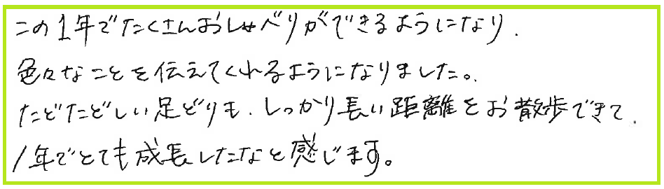 この1年でたくさんおしゃべりができるようになり、色々なことを伝えてくれるようになりました。
