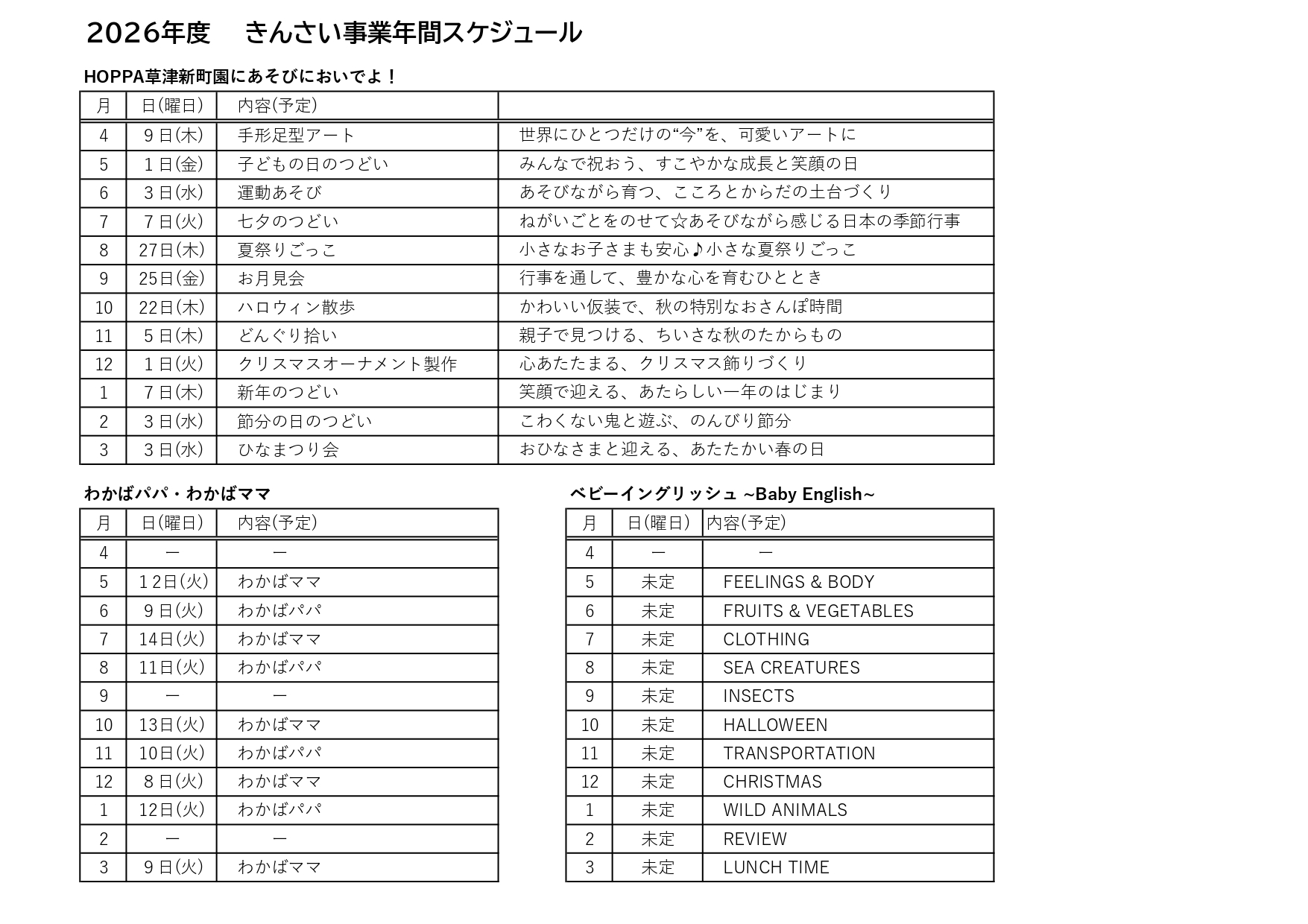 【広島市西区イベント情報】2026年度年間イベント予定【HOPPA草津新町園】