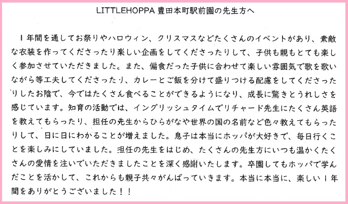 LITTLE HOPPA保育園が大好きでした。