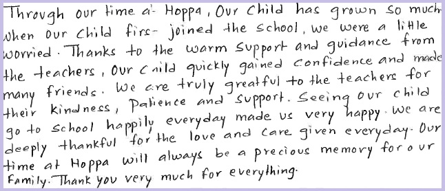 HOPPAで過ごす中で、私たちの子どもはとても大きく成長しました。